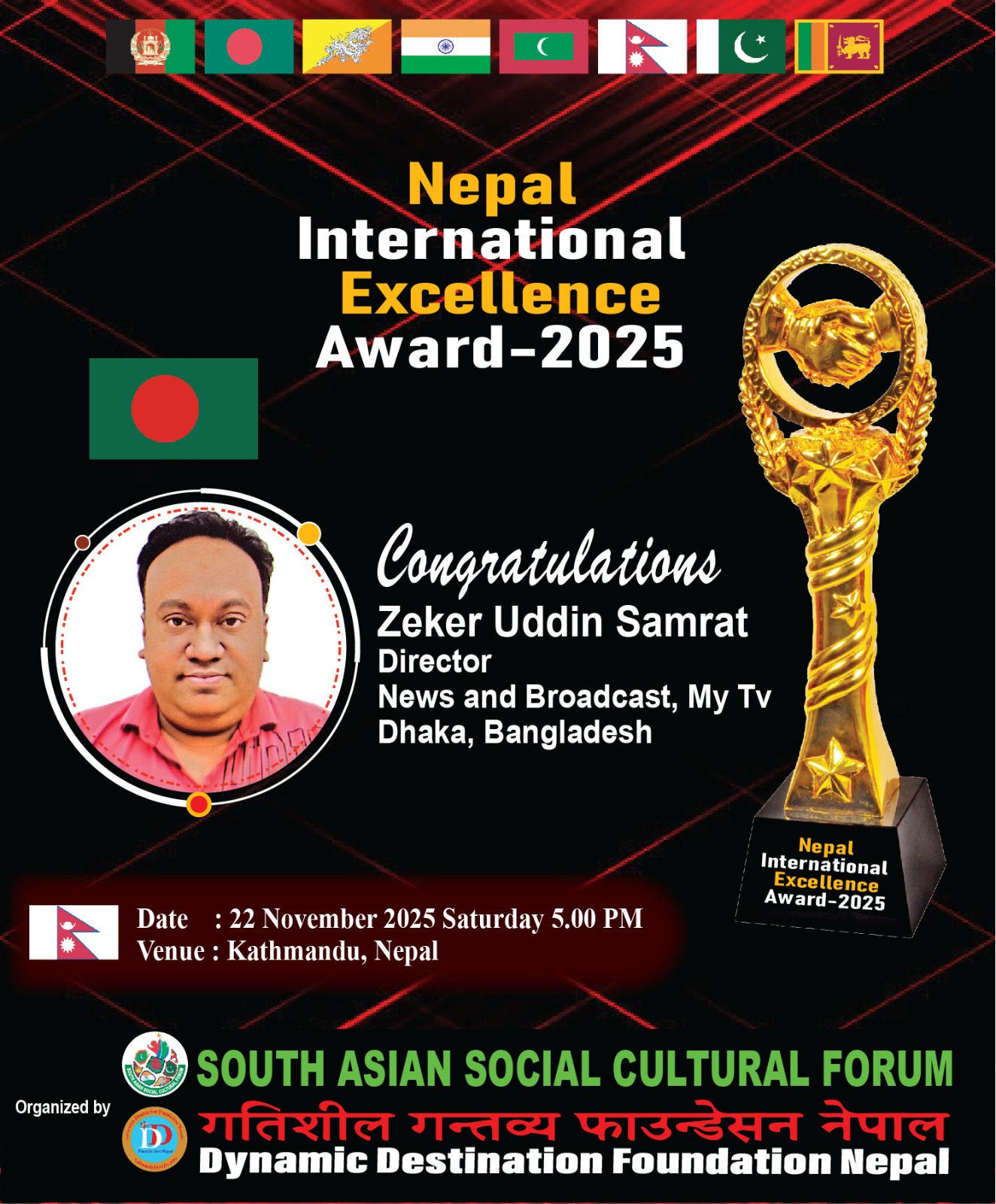নেপালে এক্সিলেন্স অ্যাওয়ার্ড পেলেন মাইটিভি পরিচালক জেকের উদ্দিন সম্রাট*